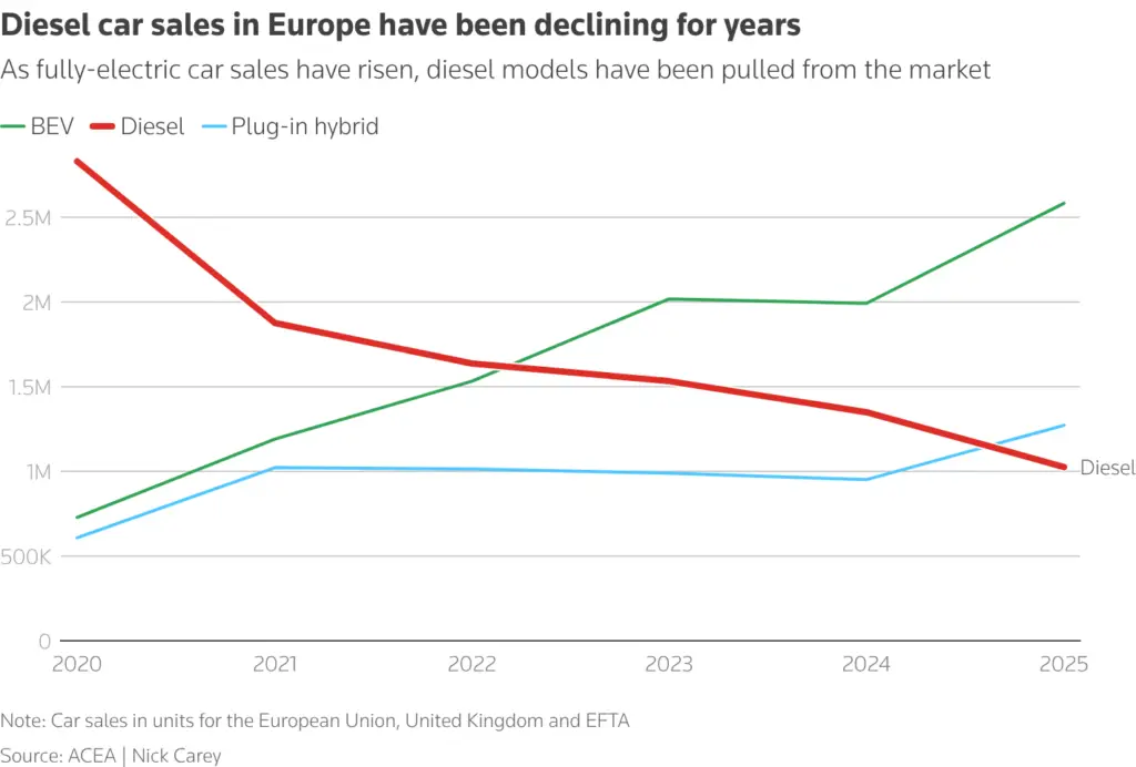 Fiat-to-Jeep owner Stellantis is quietly resurrecting diesel versions of at least seven car and passenger van models across Europe as it retreats from electric vehicles, according to a review of dealer websites and company statements to Reuters. In a previously …